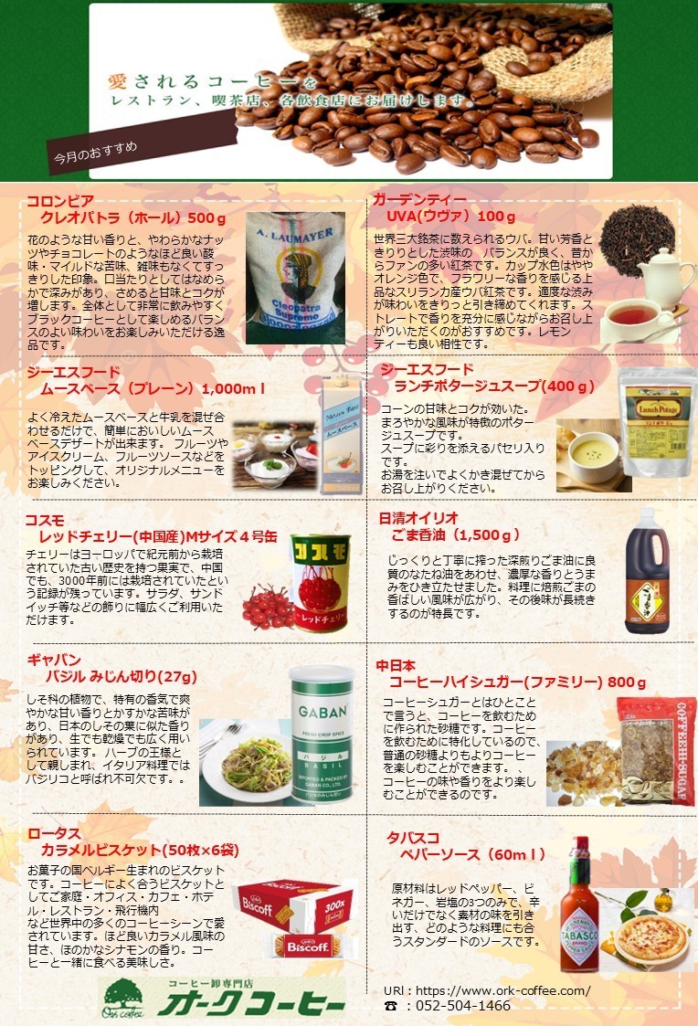 今月のおすすのコーヒーは、コロンビア クレオパトラです